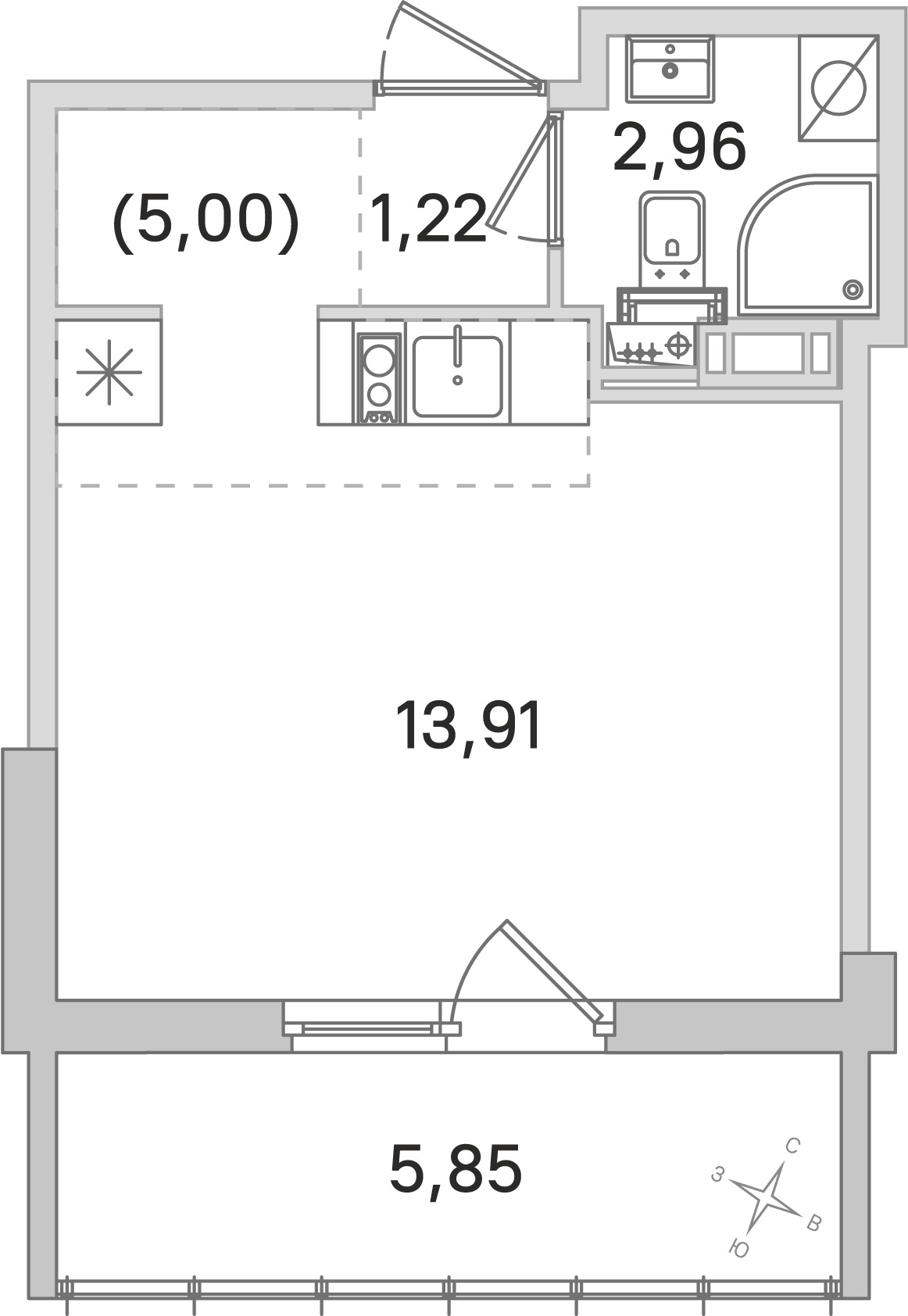Квартира-студия на 4-ом этаже 23,09 кв.м