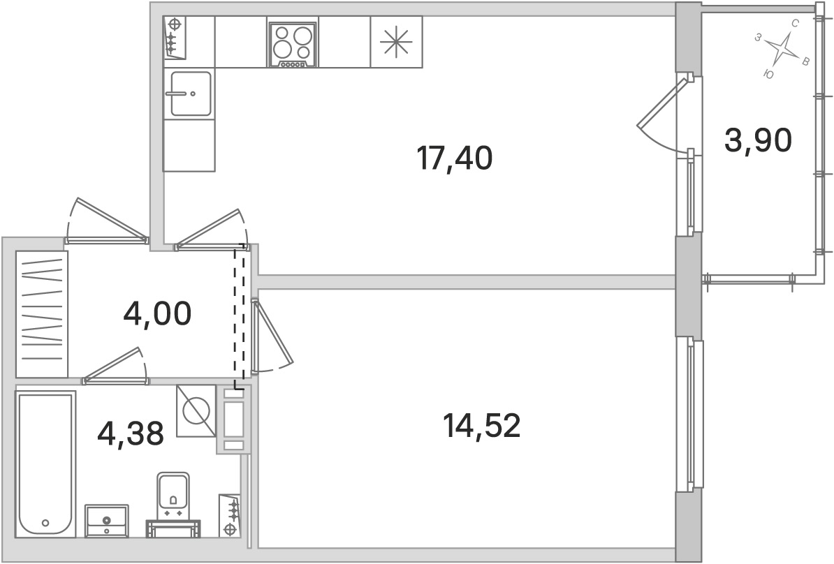 - Площадь40,3 м2