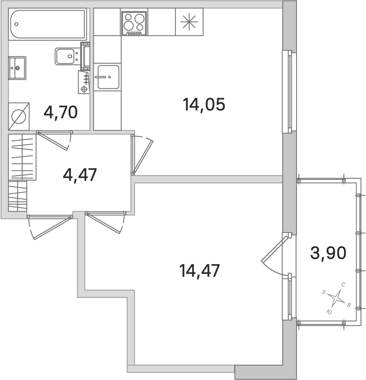 Однокомнатная квартира на 1-ом этаже 37,69 кв.м