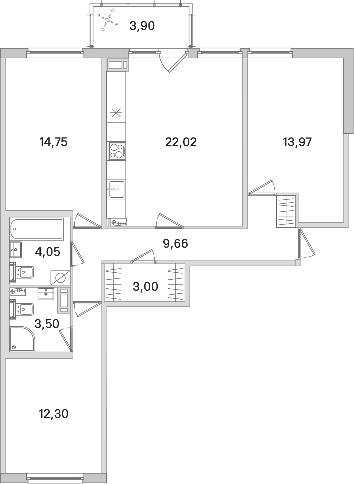 - Площадь кухни22,02 м2