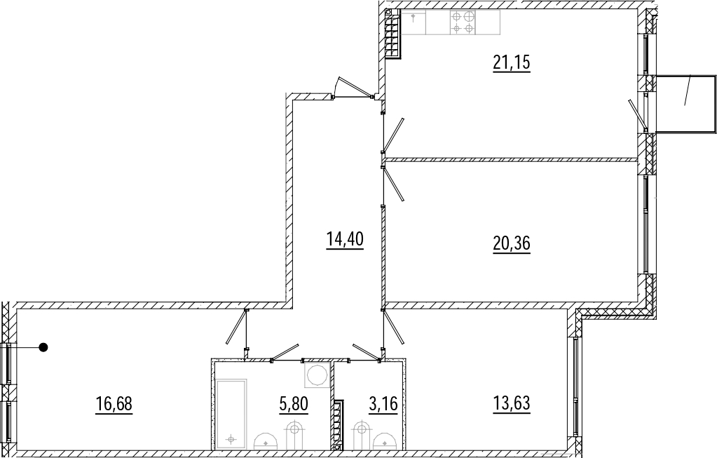 - Площадь кухни21,15 м2