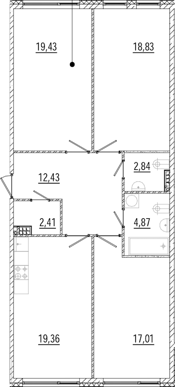 - Площадь кухни19,36 м2