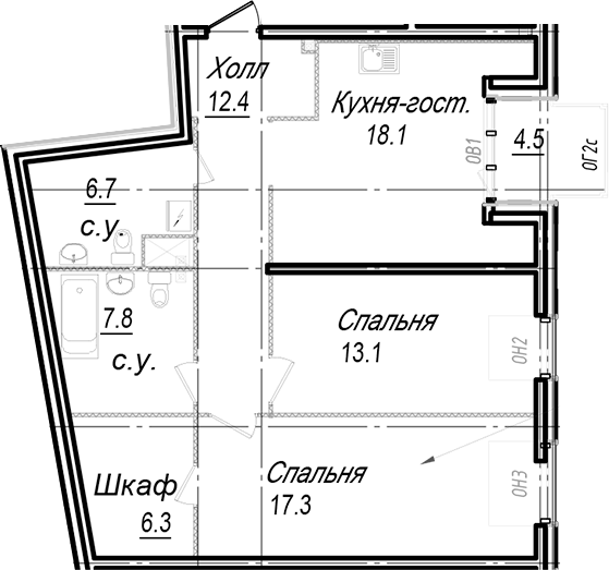 - Площадь кухни18,1 м2