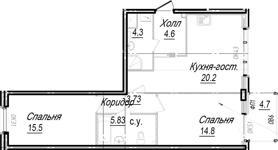 - Площадь70,2 м2