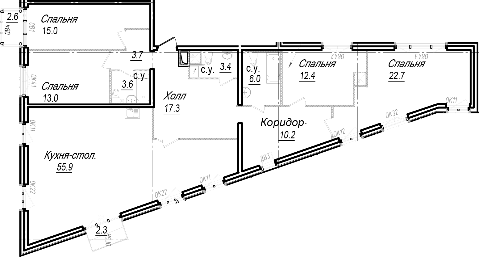 - Площадь кухни55,9 м2