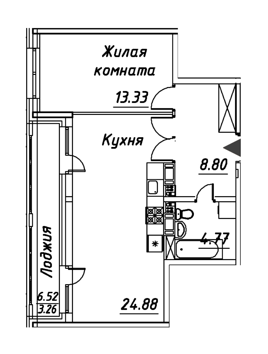 Однокомнатная квартира на 12-ом этаже 55,04 кв.м