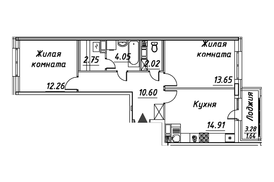 - Площадь кухни14,91 м2