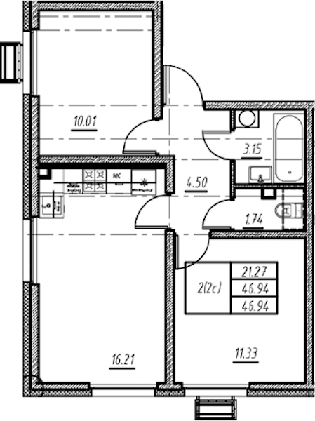 • Площадь46,94 м2