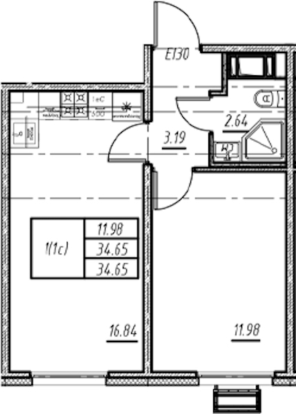 • Площадь34,65 м2