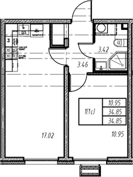 - Площадь34,85 м2