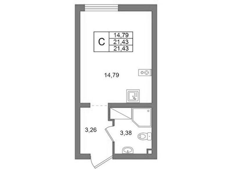 Квартира-студия на 6-ом этаже 21,43 кв.м