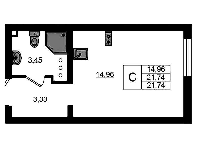 Квартира-студия на 9-ом этаже 21,74 кв.м