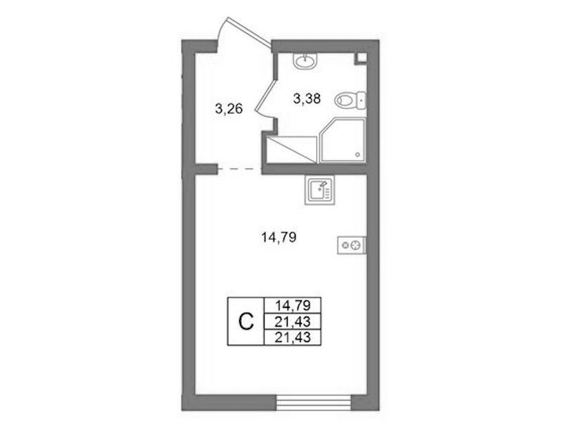 Квартира-студия на 6-ом этаже 21,43 кв.м