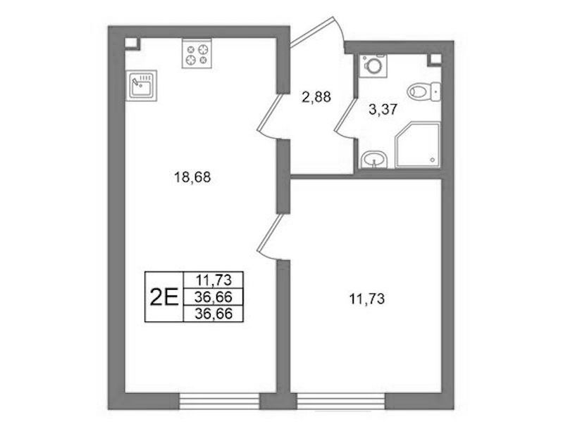 - Площадь36,66 м2