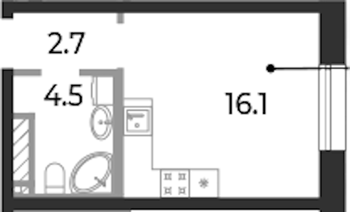 Квартира-студия на 7-ом этаже 23,3 кв.м