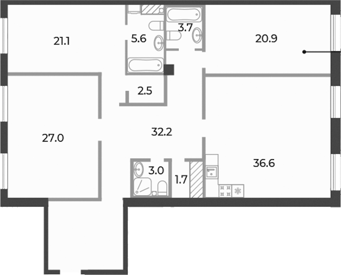 • Площадь кухни36,6 м2