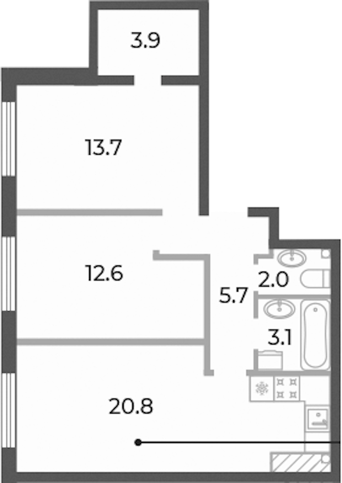 - Площадь кухни20,8 м2