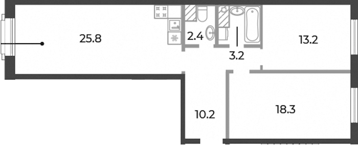 - Площадь кухни25,8 м2