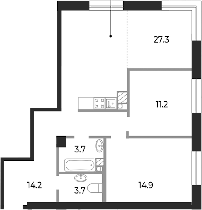 - Площадь кухни27,3 м2