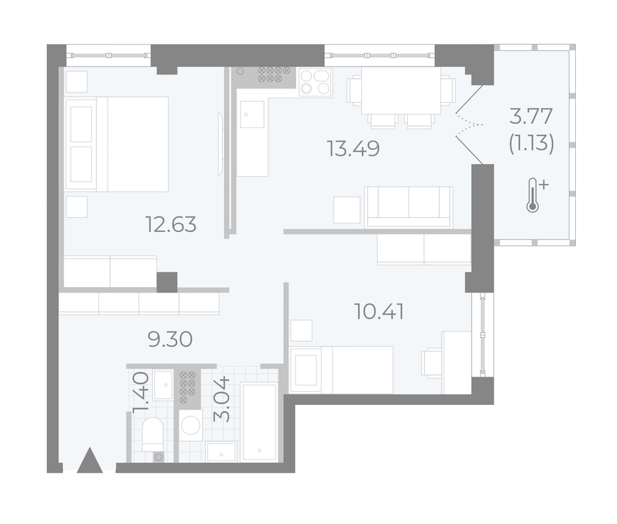 - Площадь кухни13,49 м2