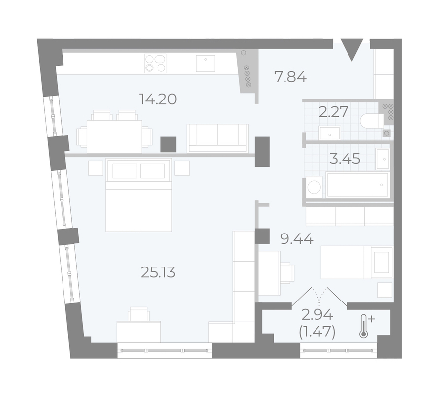 - Площадь кухни14,2 м2