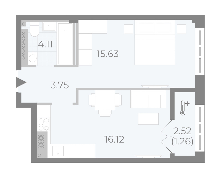 - Площадь кухни16,12 м2