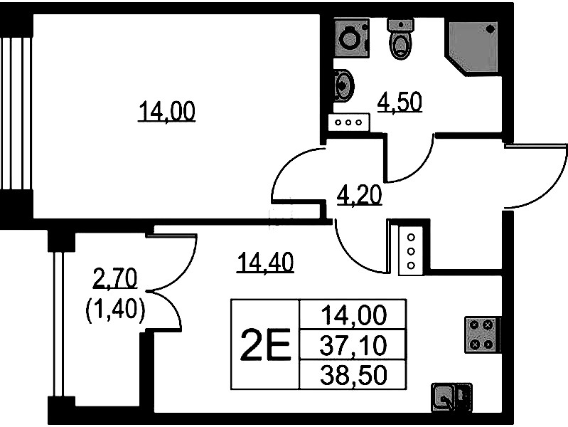 - Площадь38,5 м2