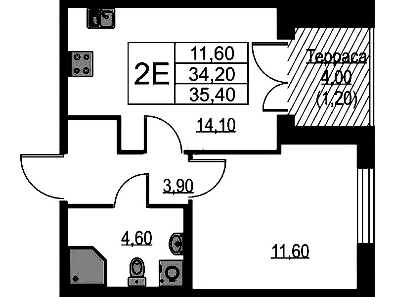 • Площадь35,4 м2