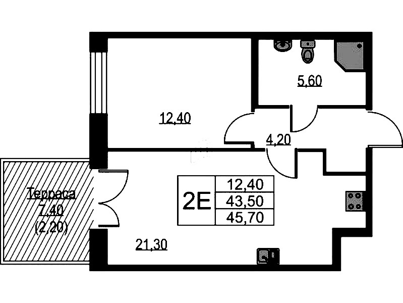 - Площадь45,7 м2