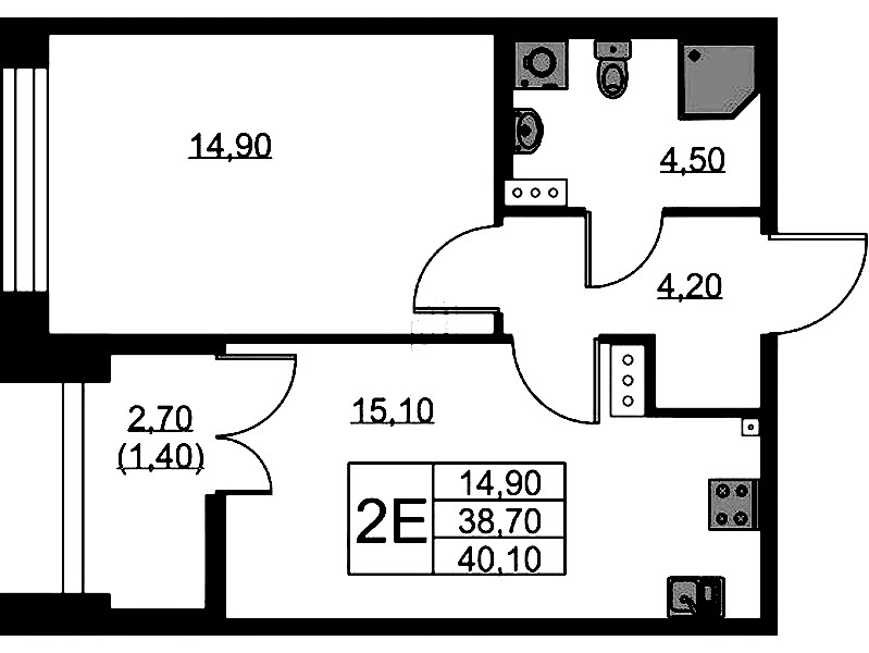 Однокомнатная квартира на 6-ом этаже 40,1 кв.м