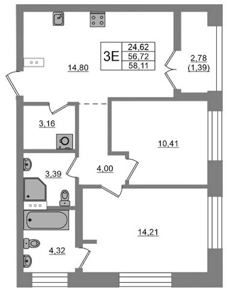 • Площадь58,11 м2