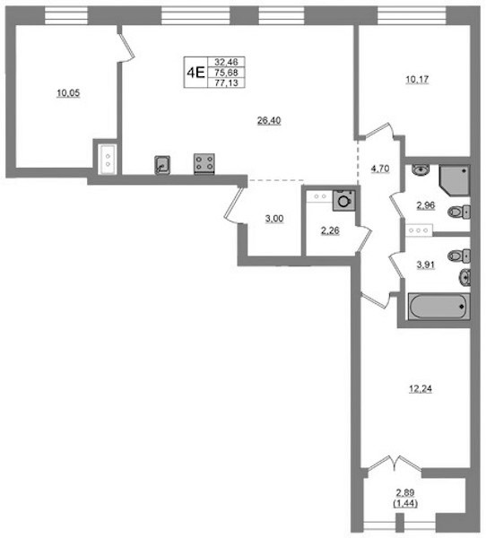 - Площадь77,13 м2