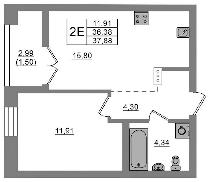 - Площадь37,88 м2