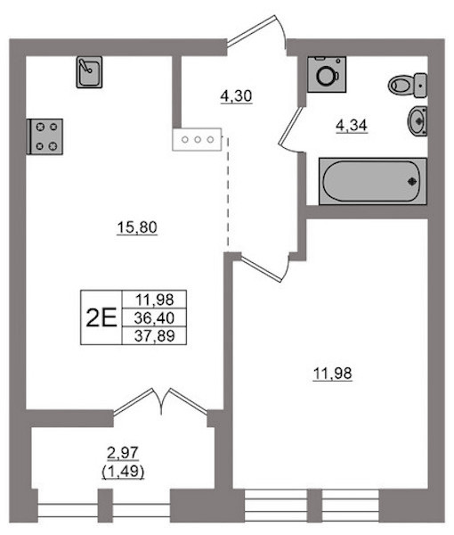 - Площадь37,89 м2