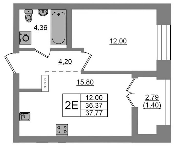 • Площадь37,77 м2