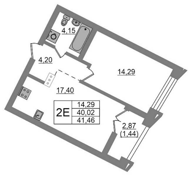- Площадь41,46 м2
