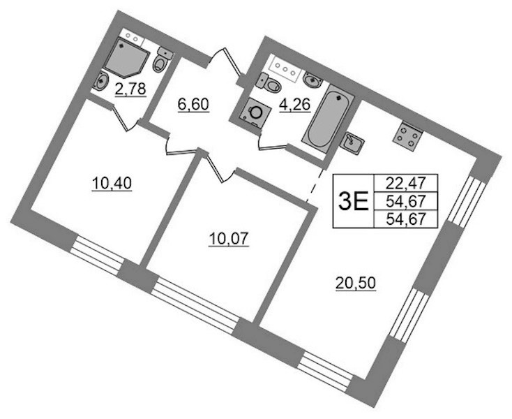 - Площадь54,66 м2