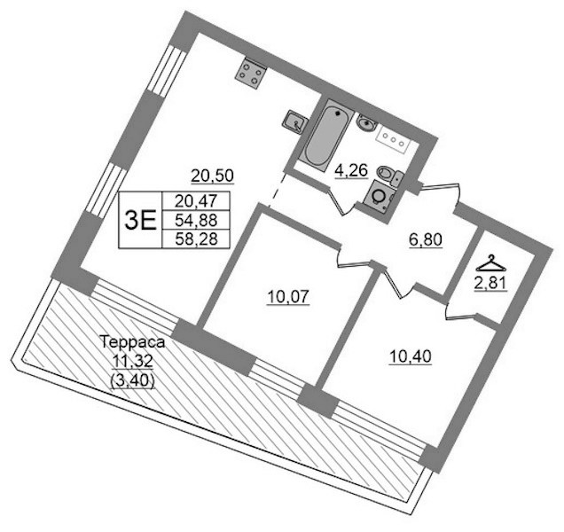 Двухкомнатная квартира на 7-ом этаже 58,28 кв.м