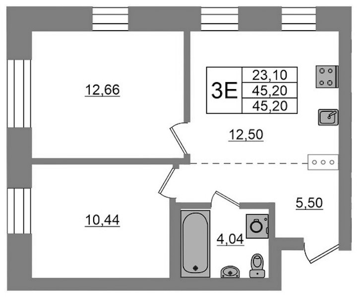 - Площадь45,2 м2