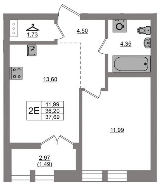 - Площадь37,69 м2
