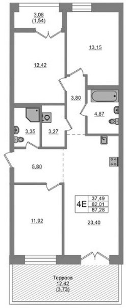 - Площадь87,28 м2