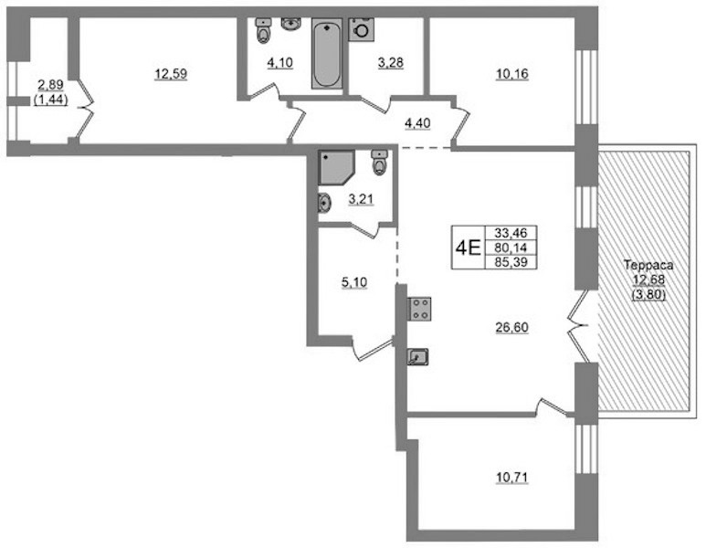 - Площадь85,39 м2
