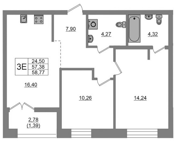 - Площадь58,77 м2