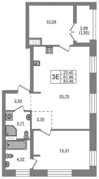 • Площадь63,48 м2