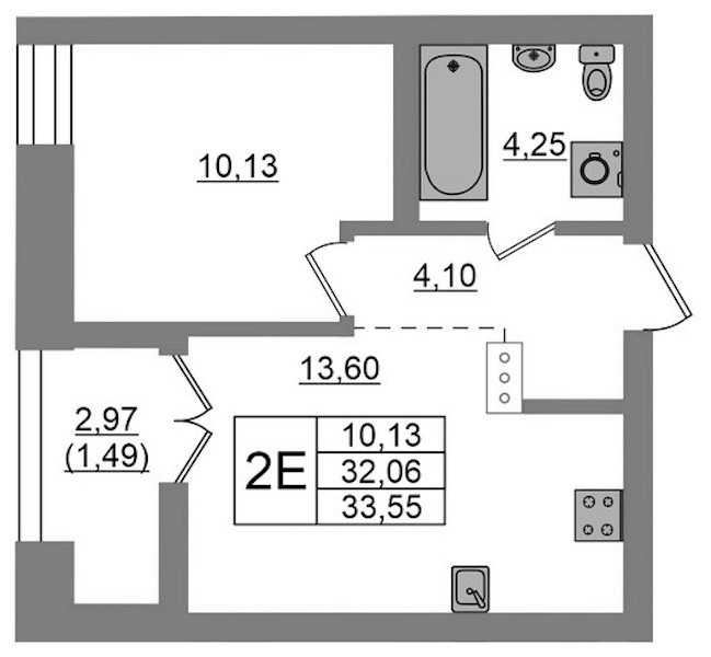 - Площадь33,55 м2