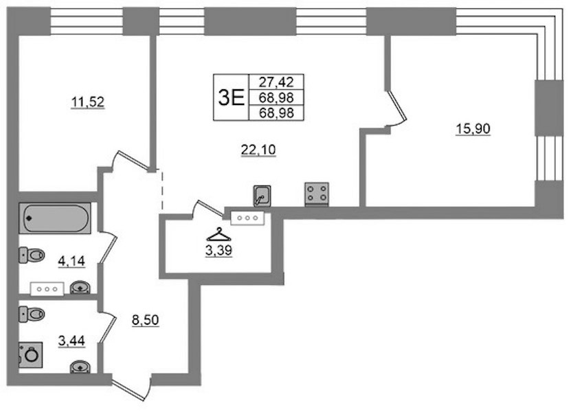 - Площадь68,98 м2