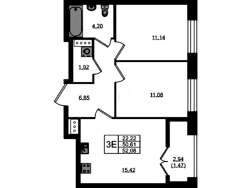 - Площадь52,08 м2