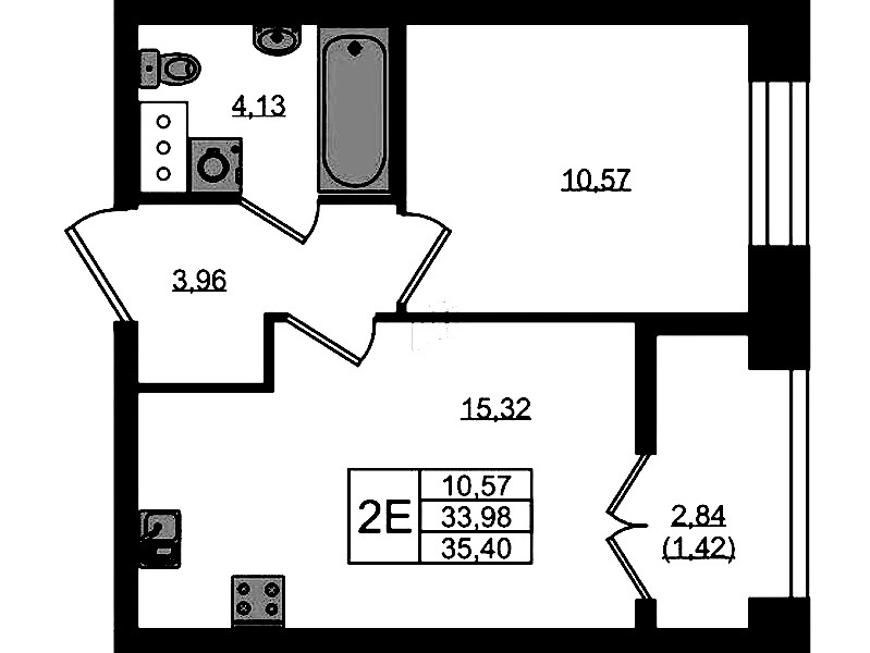 - Площадь35,4 м2