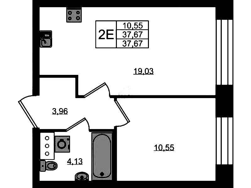 Однокомнатная квартира на 3-ем этаже 37,67 кв.м