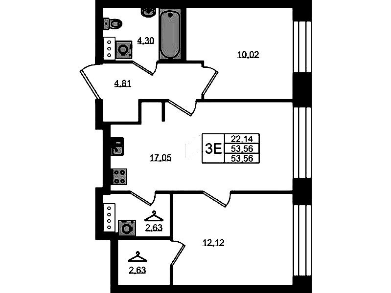 - Площадь53,56 м2
